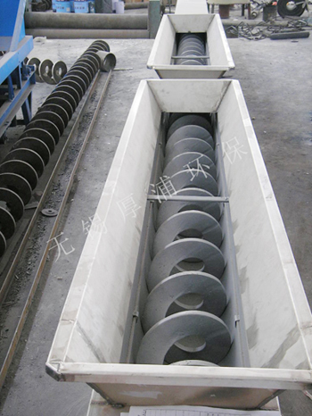 無軸螺旋輸送機(jī)是用于傳輸工業(yè)生產(chǎn)過程中產(chǎn)生的各種廢物及濾渣,結(jié)構(gòu)形式為無軸螺旋,物料由進(jìn)口輸入,經(jīng)螺旋輸送至尾端排放,整個傳輸過程除進(jìn)出口料斗外均在密閉槽體中進(jìn)行。傳動采用軸裝式減速機(jī),并在減速機(jī)端設(shè)置軸承及防塵油封。設(shè)備運(yùn)行過程中沒有高速運(yùn)轉(zhuǎn)部件,螺旋下襯耐磨尼龍,磨損低,維護(hù)量小。